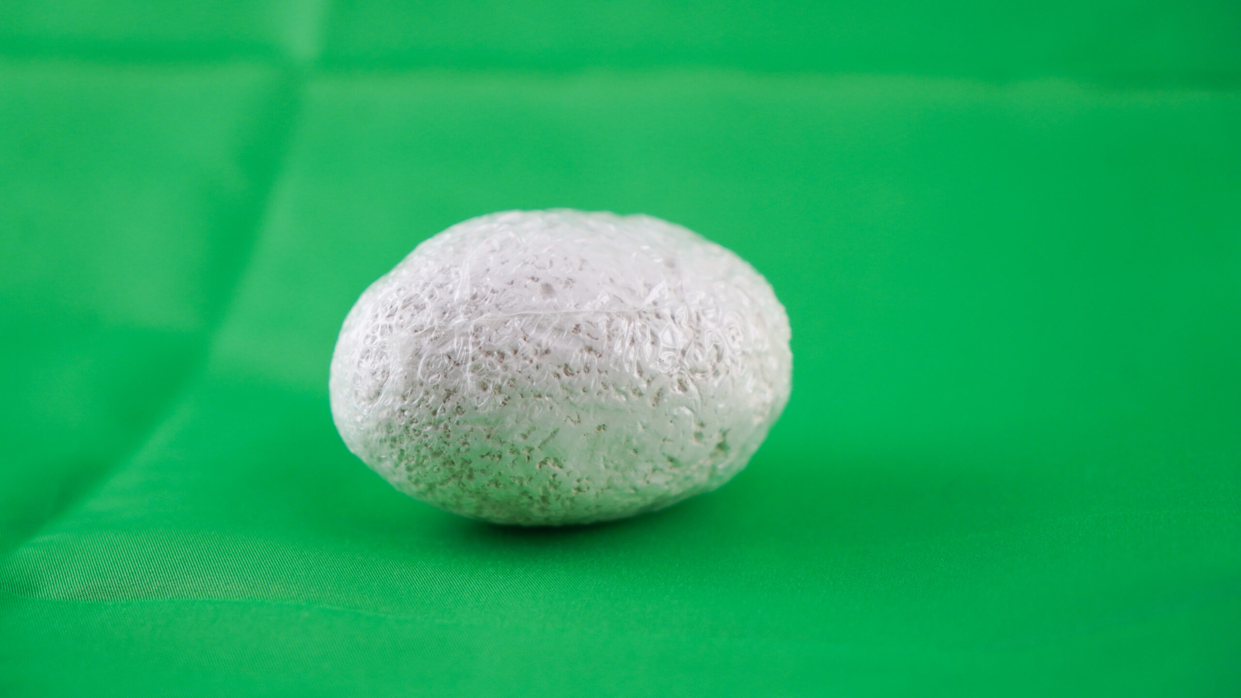 Het ei op de foto zit nog in plastic en is ongeveer 8cm x 6cm x 6cm.